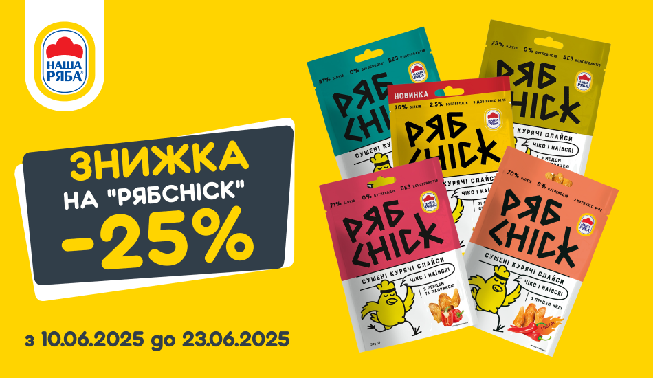 Ловіть знижку -25% на улюблені курячі сушені слайси РябChik!