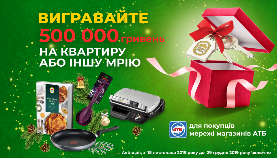 – Зареєструйте мінімум 3 кода і беріть участь у розіграші ГОЛОВНОГО ПРИЗУ – 500 000 грн на квартиру або іншу мрію