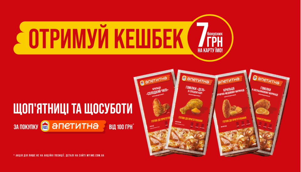 Щоп’ятниці та щосуботи отримуйте додатковий кешбек за покупку продукції ТМ «Апетитна»!