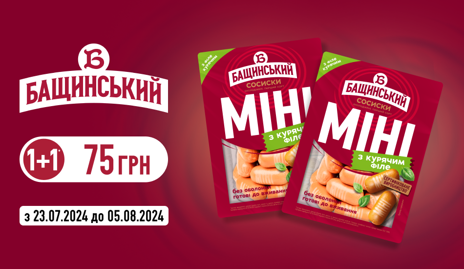 Беріть відразу дві упаковки «МІНІ з курячим філе» від ТМ «Бащинський» за ціною однієї – всього за 75 грн!