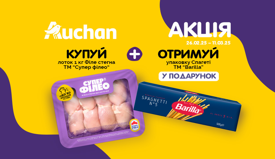 З 26 лютого по 11 березня купуйте 1 кг філе стегна «Супер Філео» та отримуйте в ПОДАРУНОК спагеті «Barilla».