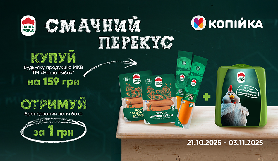 Купуйте будь-яку продукцію МКВ ТМА «Наша Ряба» на 159 грн і отримайте брендований ЛАНЧ БОКС ЗА 1 ГРН.
