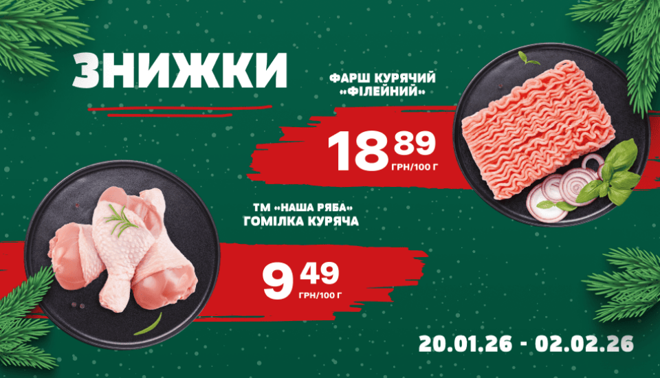• фарш курячий «Філейний» – 18,89* грн/100 г;