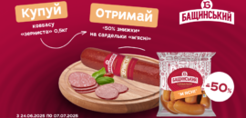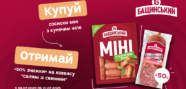 До -50% на сардельки «М’ясні» від «Бащинський»