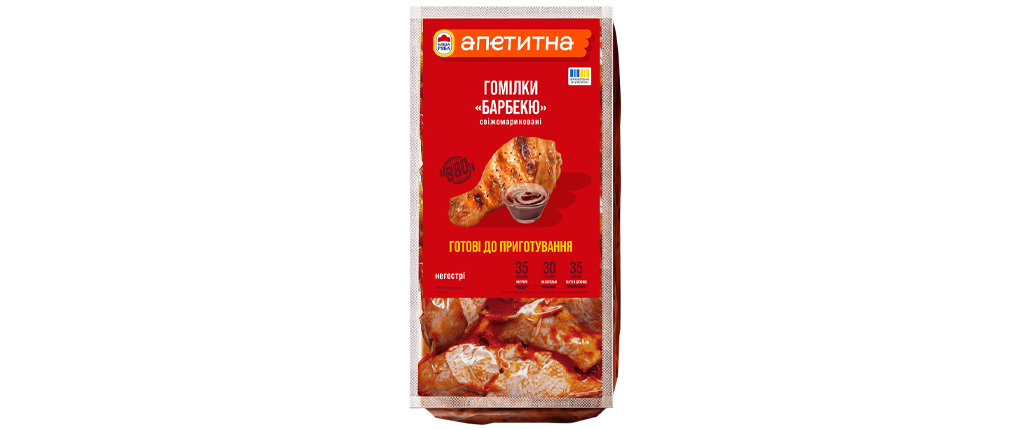 Гомілки «Барбекю» мають ніжний та благородний копчений аромат «з димком» у поєднанні з солодкістю меду. Основні інгредієнти: мед, зерна гірчиці, оцет.