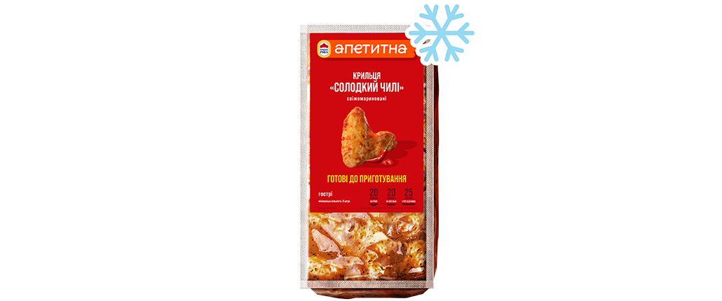 Крильця «Наша Ряба» з приємним солодкуватим смаком у поєднанні з вираженою гостротою чилі. Це найкраще поєднання для любителів гостро-солодких смаків. Заморожені крильця можна зберігати до року, тож вони можуть бути завжди під рукою, коли захочеться чогось гостренького чи завітають друзі у гості.