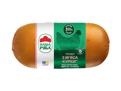 Цей рулет стане хітом вашого столу. Адже він дуже зручний у споживанні, смачний та соковитий завдяки вмісту м’яса стегна у складі. У кожному його шматочку 100% власної курячої сировини*.