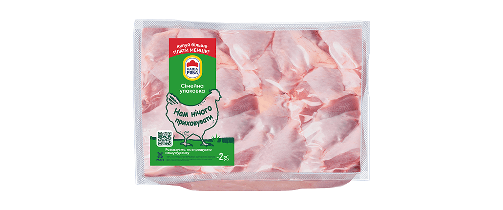 Сімейна упаковка – це 2 кг гомілки із соковитим м’ясом і вираженим смаком курки. Саме цей продукт обожнюють діти та дорослі, адже його так зручно їсти й просто готувати! Сімейна упаковка чудово підійде для великої родини або компанії.