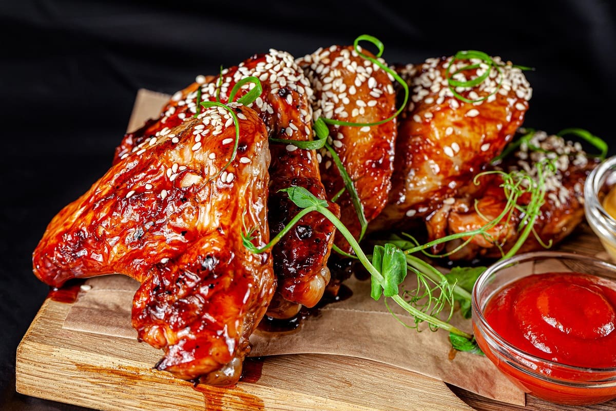 Пікантні крильця підкреслять драйв вечора. Їх можна подати з гострим соусом у формі «кривавих бризок» для справжнього геловінського ефекту.