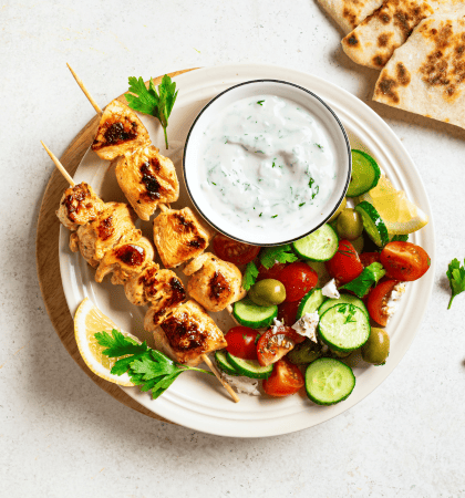 Ідея: подайте шашлик з салатом із свіжих овочів для свіжого контрасту та йогуртом з травами.